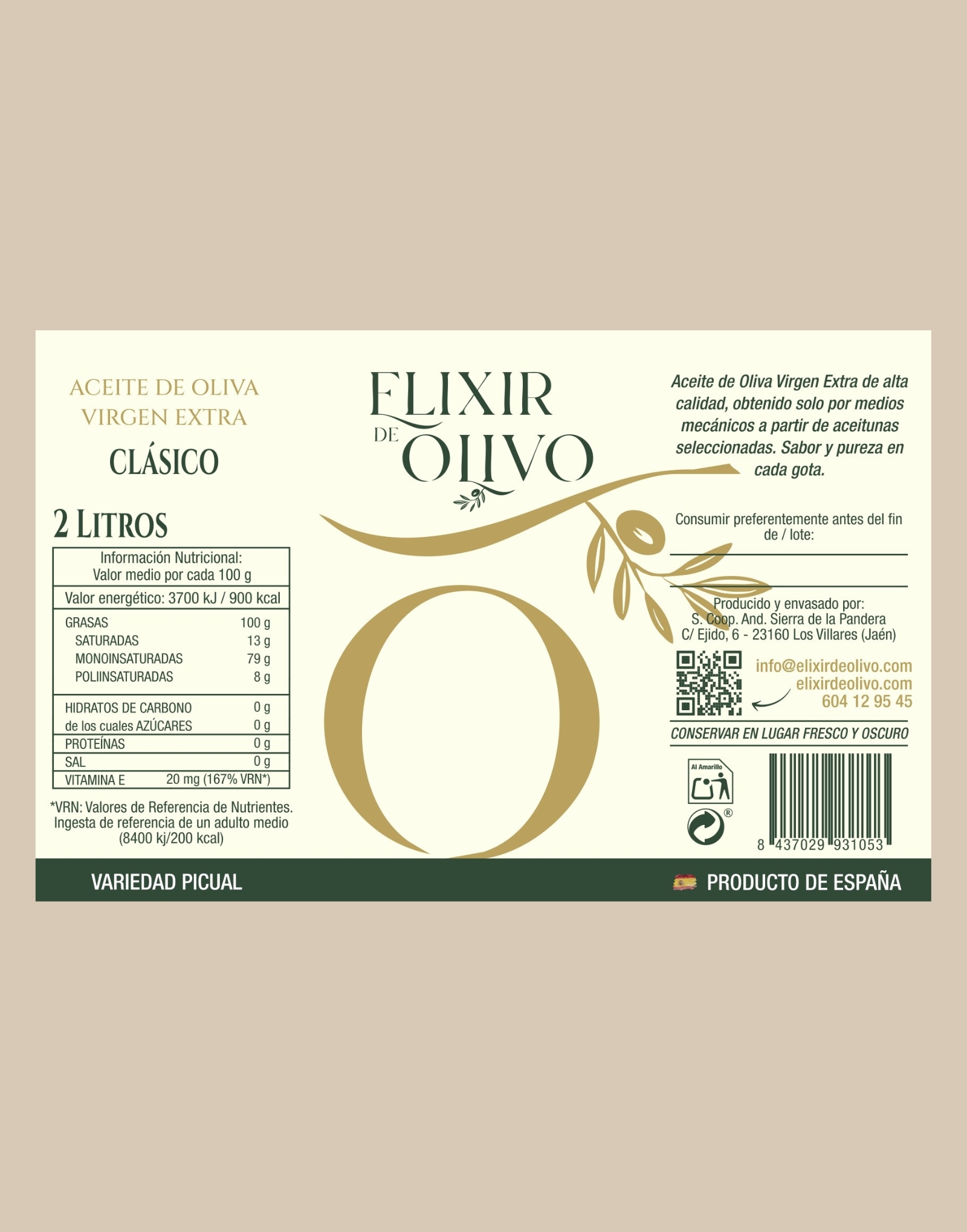 Un AOVE con carácter y elegancia, pensado para quienes disfrutan los matices: aromas verdes, frescura y un final intenso que transforma lo sencillo en memorable. Nacido del cuidado del origen y la selección, Elixir de Olivo acompaña tus platos con personalidad, desde un pan recién cortado hasta una cena especial. Descubre una experiencia gourmet auténtica, pura y llena de vida.
